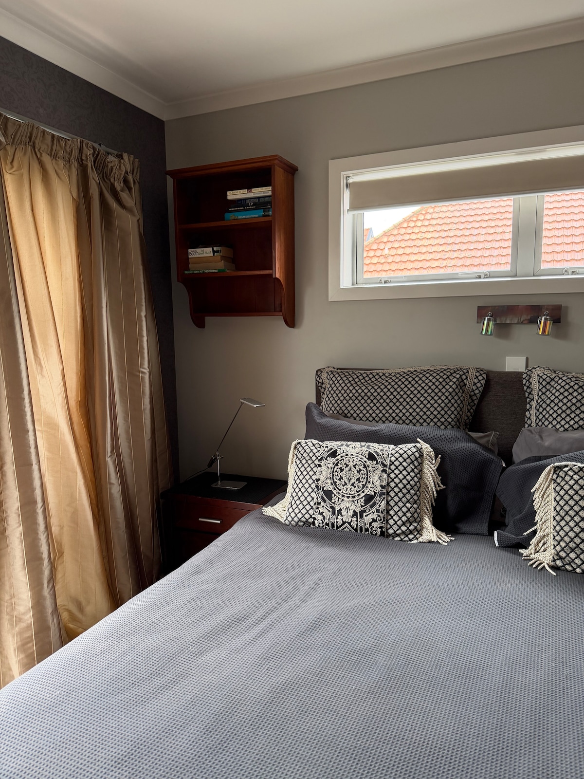 5 minutes’ drive from central Palmerston North. Spacious (60m2) in a nice neighborhood. Has ensuite with shower, vanity, toilet BUT NO FULL kitchen. Has wardrobe, microwave, hair dryer, Smart TV/NETFLIX, toaster, plates, cutlery, chopping board, small oven, electric kettle, fridge, heat pump, tea, coffee & milk. NB; Breakfast ISN'T included. Free parking on premises/street. Laundromat & dairy/convenience shop are nearby. Several restaurants/supermarkets and River-walk in 15-20 minutes’ walk.