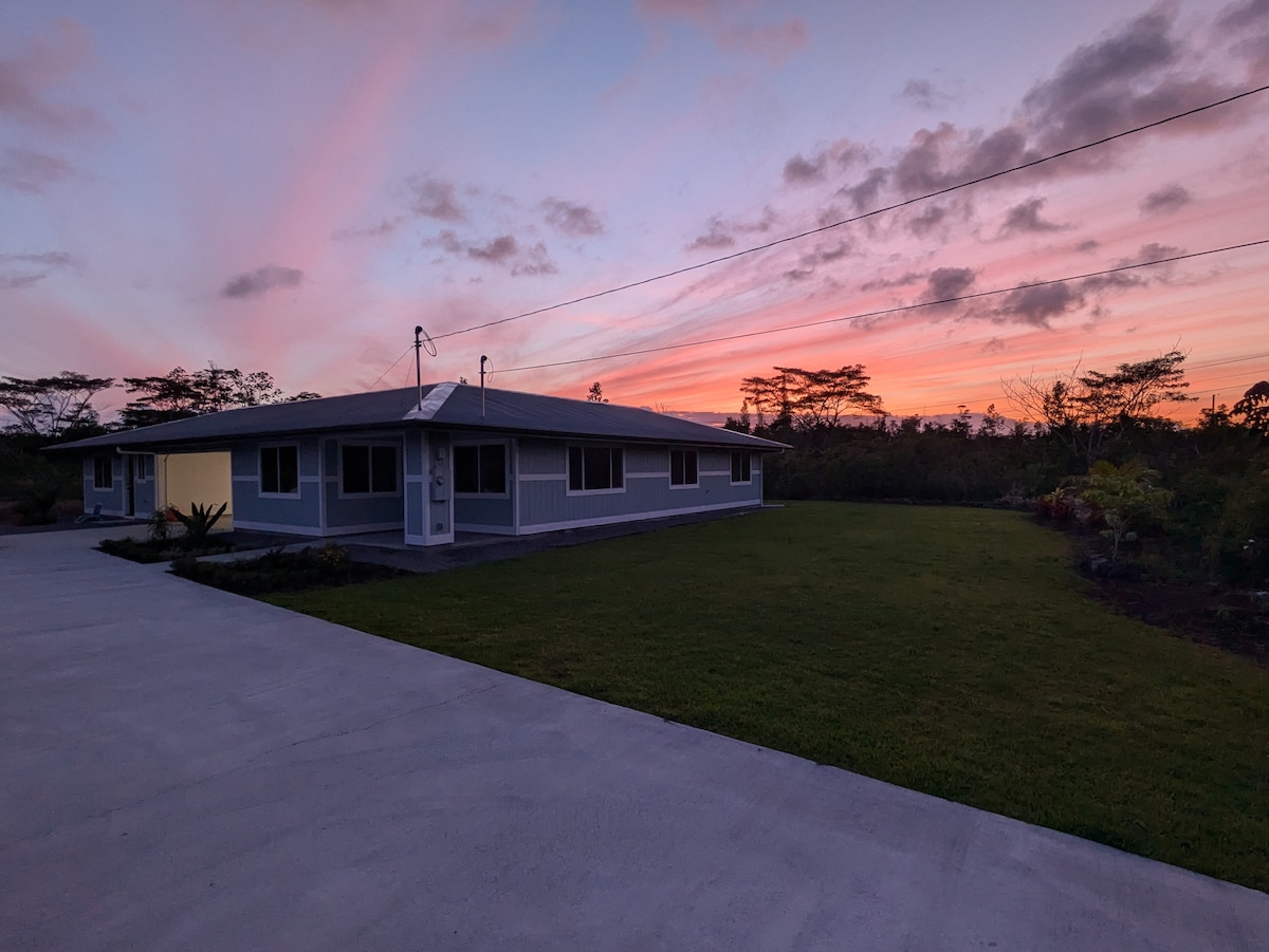 Relax with family and friends at this peaceful stay, located in the beautiful subdivision of Hawaiian Paradise Park. This newly renovated two bedroom, one bath home offers an affordable and relaxing stay with all of the comforts of home. This hale offers quick access to a secluded beach trail, the local hangout spot known as The Cliffs, and local farmers markets. Just a short drive to nearby Pāhoa, Keaʻau, or Hilo to explore all Puna has to offer.