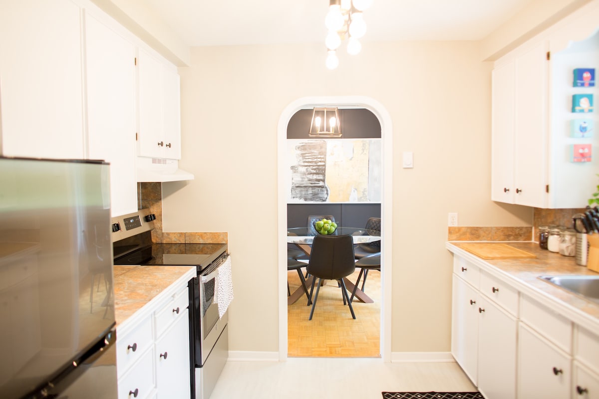 Enjoy our upscale mid-century 3-bedroom bungalow. Located on the ever popular "Hill" in central Fredericton, this thoughtfully curated property is the perfect get away for you and up to 5 other guests. Enjoy Fredericton's beautiful restaurants and breweries nearby. This neighbourhood has great access to the city's various walking, biking, or running trails. We are also close to UNB, STU, Grant Harvey Arena and all of your grocery and shopping needs are minutes away.