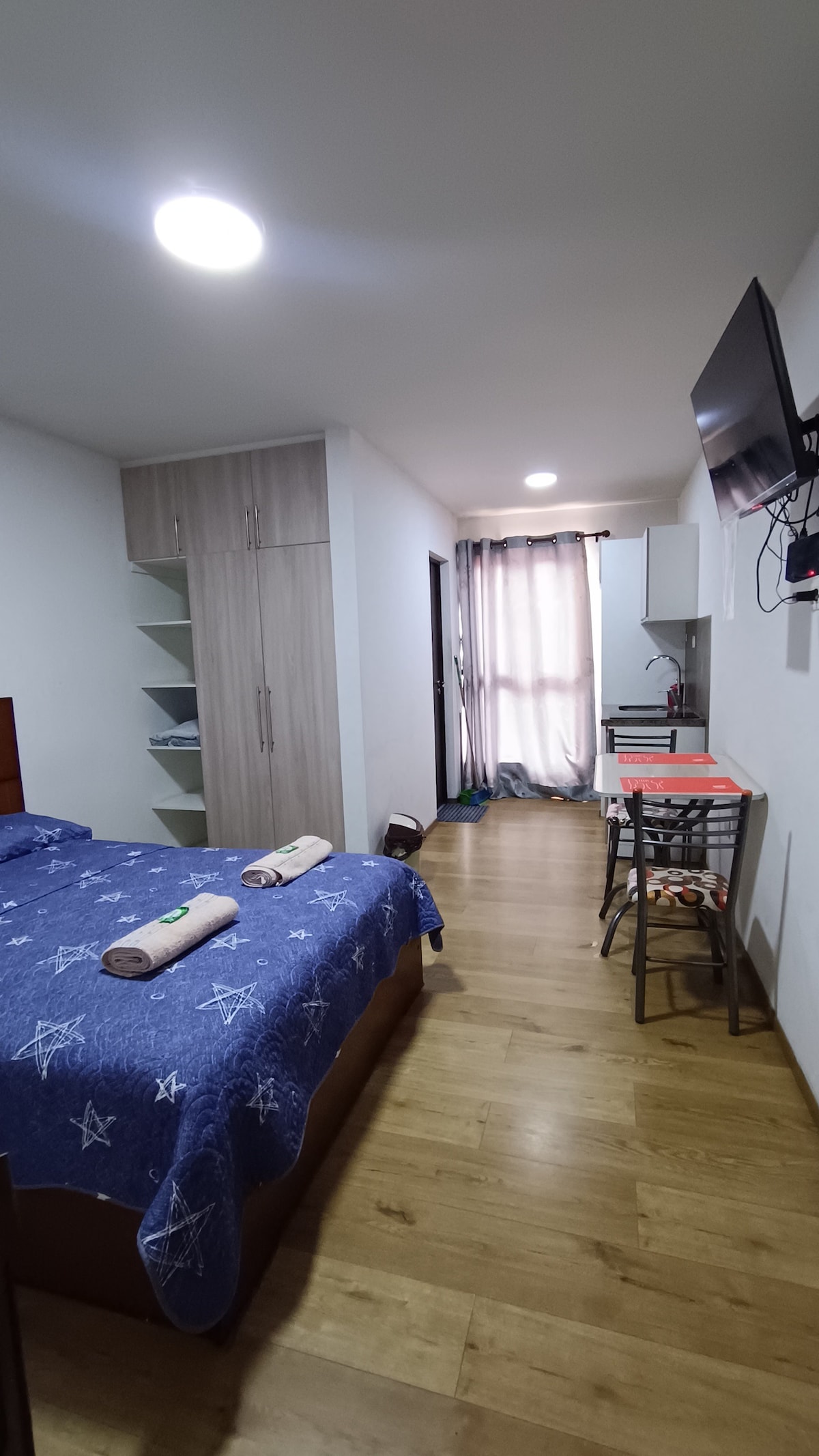 Enjoy an authentic and personalized experience that our cozy suite offers: - Double bed - Private bathroom - Induction cooktop - A microwave oven - Mini fridge - Wifi and Smart TV - Parking at a cost according to availability Common Areas - Coworking rooms - 2 grills - Terrace with a good view - 2 elevators - Laundromats - Drying cages - 24-hour doorman