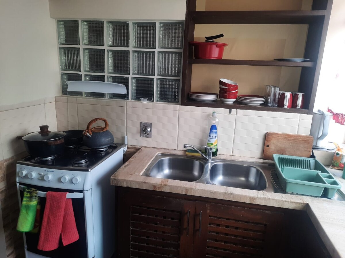 Apartment located behind the F. Capriles Stadium, with amenities for a business trip or family vacation. It includes a living room with a sofa bed, a dining area, a guest bathroom, a gas stove, a refrigerator, a microwave, a blender, an electric kettle, a coffee maker, and kitchenware. The suite features a queen-size bed, a 43-inch Smart TV with satellite channels, and a bathroom. An additional bedroom with two twin beds is available only after the third guest or for an extra fee.