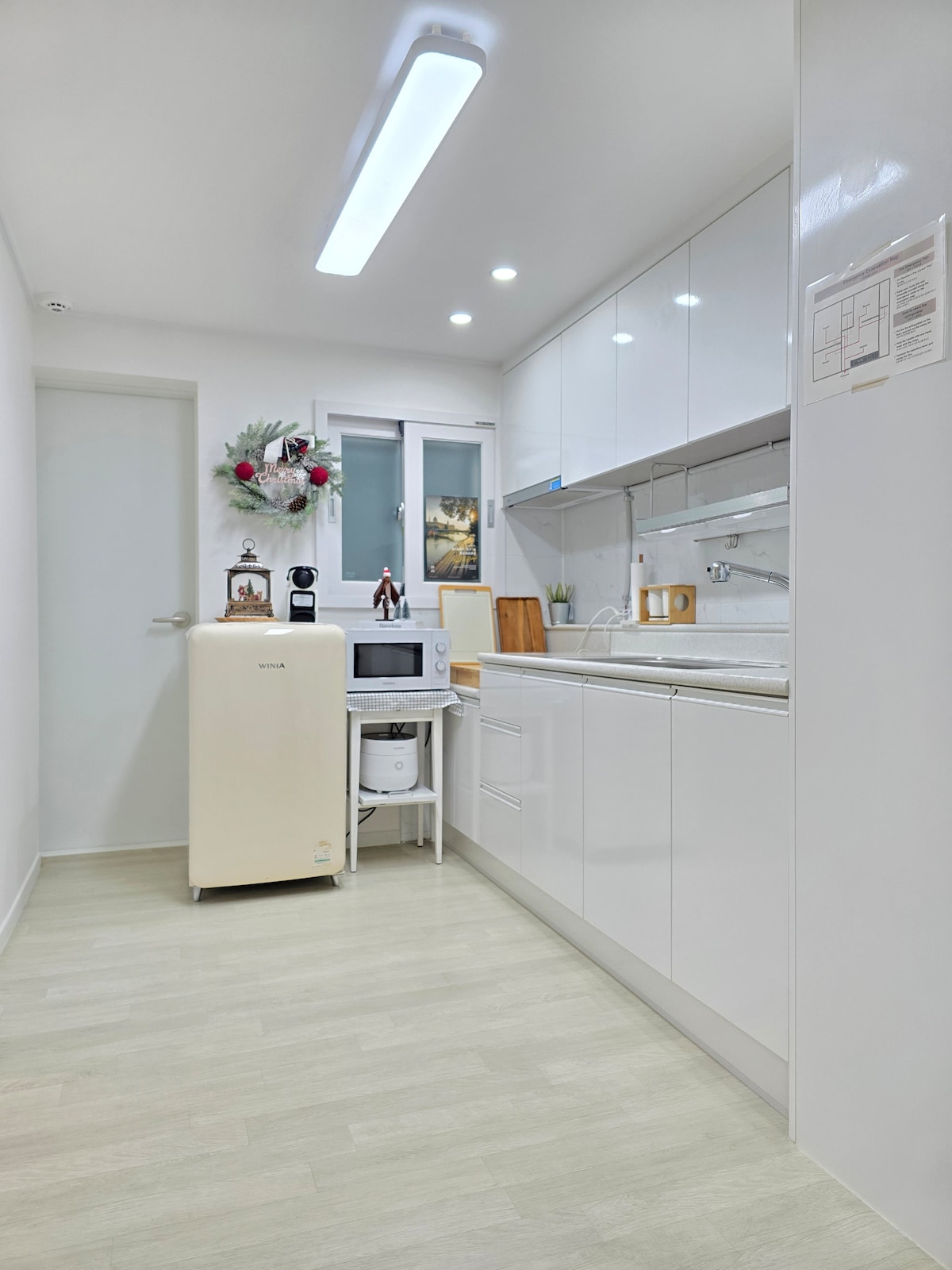 In a quiet Suwon Hwaseong, your own peaceful time Because it is newly built, it is hygienic, and free parking is also available. It is located in a quiet residential area close to major tourist attractions in Suwon Hwaseong, and it is important to have a comfortable rest. Perfect for travelers. (After February, the narrow parking space has been improved to allow for comfortable parking.) As you can see from the exterior of the building, this is not a remodeling, but a new building built from the beginning. With white bedding that is changed every day, you don't have to worry about bedbugs or ticks You can see the cleanliness. Amenities are neatly packaged individually according to the number of people, and we have carefully prepared soap, shower towels, toothbrushes and toothpaste sets, as well as disposable towels and scouring pads. The photos were taken directly with a mobile phone without filters, and we tried to capture the true appearance of the beautiful space without any embellishment. There is also a grocery store within a 1-minute walk. Simple grocery shopping is also convenient at any time.