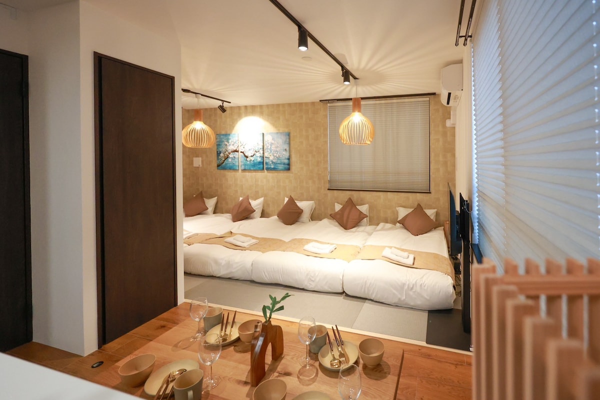 Step into this new ground floor apartment in Sumida, Tokyo, near the Skytree, where the light wood tones and soft lighting intertwine to create a relaxing and warm living experience. Listing Layout • Large living room Comfortable sofas and TVs make the leisure time of the trip relaxing and enjoyable. • Open kitchen Equipped with basic kitchenware, cutlery, electric kettle, refrigerator, microwave oven and other appliances, it is suitable for making a warm home-cooked meal occasionally. • Two private bedrooms Each is equipped with a 1.6m × 2.0m large double bed, soft and comfortable, with a fresh and modern layout, making people feel relaxed as soon as they enter the door. • Bathroom equipment • Wet and dry separation design to keep the space tidy and fresh. • Bathtub and separate shower to relax during your trip. • Double vanity design for more efficient morning and evening grooming. • Equipped with basic toiletries such as disposable toothbrushes, hairdryers, etc. • The washing machine has a drying function, so you can easily handle laundry needs during business trips or long stays. Comfortable and convenient location • Convenience stores, supermarkets, cafes, and authentic Japanese restaurants within walking distance. • About 3 mins walk to Tokyo Skytree and Skytree City Shopping Mall • Easy access to popular areas such as Asakusa, Ueno, Akihabara, etc. House Features • Newly renovated, cozy and bright • Double bedroom design, suitable for families, couples or friends • Ground floor unit, no need to climb stairs, easy access • Free luggage storage room