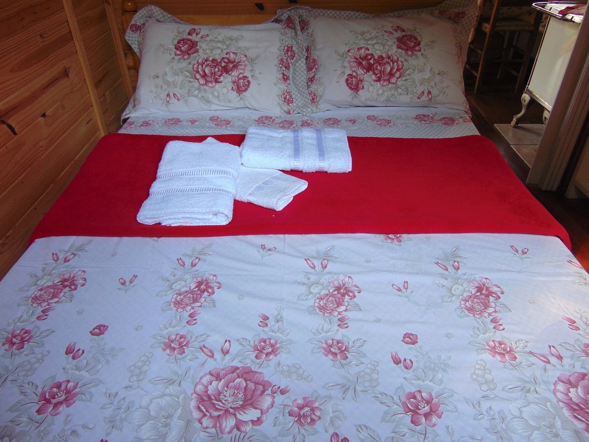 Disconnect from everything by staying under the stars. Have the most intimate contact with nature, when you are close to the trees, xaxins, making ground fire, having a wine in front of the indoor fireplace. Take advantage of the stars by looking at the sky from the balcony, or the glass ceiling. Enjoy the singing of birds and the noise of the rain. The cabin has 2 double beds and 1 single beds. On the ground floor are 1 double bed and 1 single bed, bathroom, kitchen and living room with heater. On the mezzanine there is 1 double bed and balcony.