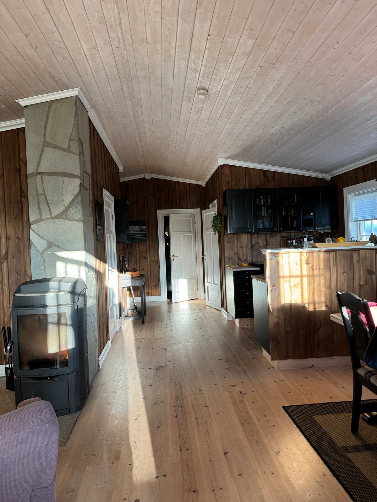 In this spacious and unique place, the whole family will be comfortable. The cabin is located by the water, with its own gate and fenced plot. There is a natural plot in the yard. It is a 100-year-old hand-built cabin that has previously been Høvern school. The cabin is located alone, without view from neighbors. There are good swimming and fishing opportunities. Rented to adult responsible people. Washing, bed linen and towels are included in addition to NOK 200 per person. The road is cleared all the way to the cabin in the winter.