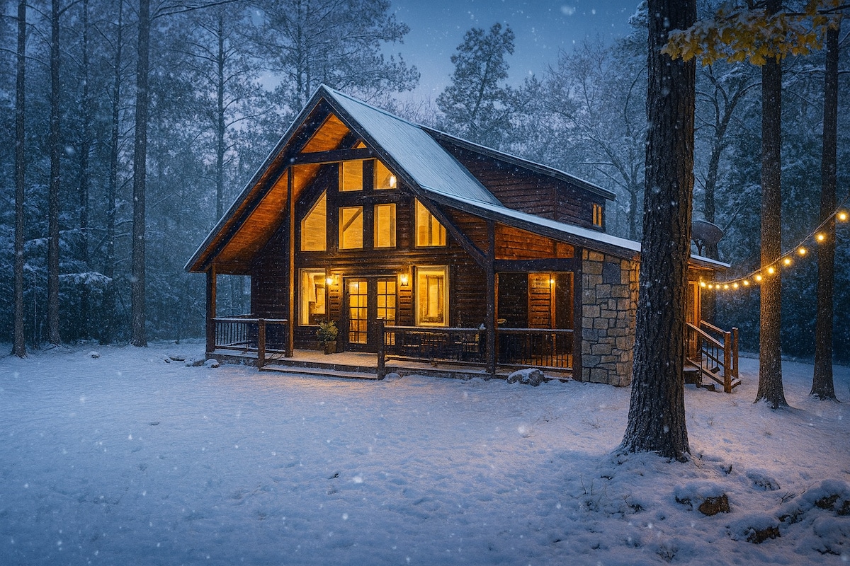 Holiday House & Hideout is a darling cabin with gorgeous, vaulted ceilings, 2 king master ensuite bedrooms. Natural wooded beauty surrounds this luxury cabin giving you a real feel of relaxation in the woods and glamping experience. This cabin certainly has that “cabin-in-the-woods” feel while offering all the luxuries of modern living including spacious yet cozy bedroom retreats and sleek modern bathrooms offering high-end amenities and custom finishes like double sinks and tiled showers and tub/shower combo. Both master suites are swathed in luxury bedding for utmost accessibility and convenience. Holiday House & Hideout also boast a loft with two queens built in beds with trundles, a pull-out sofa, and a large-screen TV. The Hideout is a separate living area with 2 sofa chairs, large-screen TV, mini fridge, 1 full bed and a 2-seat dining area. This area also has a master bathroom with a walk-in shower. A small balcony offers views of overlooking the grounds outside. Gather for cozy evenings around the large-screen TV and gas fireplace. With seamless flow between the living and dining areas, guests can interact with each other from the kitchen breakfast bar, dining table, or living room. The country-style kitchen features custom hardwood cabinetry, granite countertops and two stools at the breakfast bar, ideal for morning coffee. Your inner chef will be inspired by the stainless-steel appliances. Enjoy sit-down meals at the 8-seat dining table with a view of the main-level deck. Outside, a spacious deck with a BBQ grill offers additional room to gather year-round and a hot tub for soaking. Sip cocoa on the comfy outdoor furniture or Adirondack chairs by the wood-burning outdoor firepit area or dine al fresco at the 6-seat patio table. The deck leads to a sprawling, manicured lawn, surrounded by soaring evergreen trees. Holiday House & Hideout offers a spacious yard to enjoy a game of horseshoes, cornhole, or watch the kids play on the playset. From this cabin convenient location, is walking distance to Grateful Head, Blue Rooster, and Girls gone wine. The restaurants, shops, golf course and parks of Broken Bow lake are a 3-5 minute drive. Beds: 2 King, 2 Queen Trundles, 1 Full, Sleeper Sofa Maximum Occupancy: 15 (adults only) Exceeding the maximum occupancy results in additional charges and/or eviction without refund. Overcrowding of cabin is not allowed. NOT pet friendly - Failure to comply with a cabin’s “No Pets” policy will result in a charge of an additional $200 per rental night and eviction without refund. Service animals MUST be registered PRIOR to arrival with proof of certification. We are committed to protecting the security and privacy of our guests and protecting our cabin owners’ investments. Therefore, we allow reasonable monitoring of the OUTSIDE of the property. Devices are outside of exterior doors facing outward. Free WI-FI/Cable/Satellite included in all cabin rentals. Although WI-FI is provided it is not guaranteed. BBLC is not responsible for speed or reliability. ***With advanced notice, you can order a celebration package such as champagne or wine, souvenir wine glasses, chocolates, and roses/petals. S’mores and stories around the fire pit are a must! Notify us at least 24 hours prior to arrival and we will have the ingredients for s’mores and firewood delivered and ready for your stay. Refunds cannot be given for unused firewood. See concierge for more information. A starter supply of paper towels, toilet paper, bath soap, dish washing liquid, trash bags, dishwasher tablets, laundry soap, coffee filters, and salt & pepper will be provided for your stay. All cabins have fully equipped kitchens, iron/ironing board, towels, and linens. Charcoal is not provided. Propane is provided for gas grills. We drain and sanitize our hot tubs after every check-out. Indoor Fireplaces are seasonal November-May 1st. FURNITURE AND DECOR SUBJECT TO CHANGE WITHOUT NOTICE For additional information, see Policies.