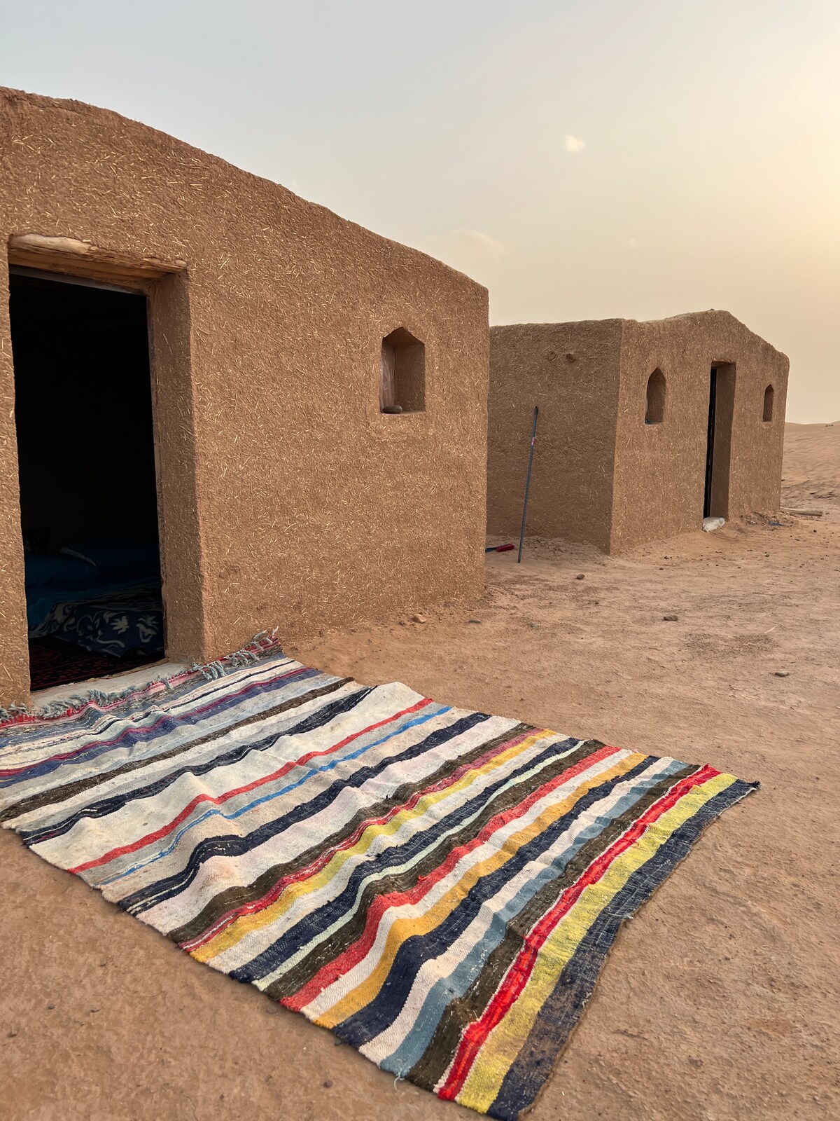 Mahamid Nights Camp with swimming pool and a cozy clay hut with private bathroom and shower in a beautiful nature area of gold dunes. Built from natural materials with electricity coming from solar power and water - from own well, this cozy earth home will keep you warm at night and cool during the day....