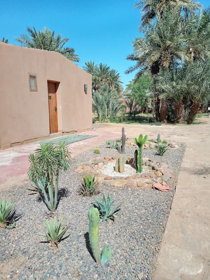 L'Oasis Source de Vie est l'oeuvre de Madani, enfant du désert et de Marie. Ce lieu est né d’un désir profond de renouer avec les traditions ancestrales et de préserver l’environnement fragile du désert. Les habitations sont construites en utilisant au maximum les techniques traditionnelles et les matériaux présents sur place. Aux portes du Sahara vous aurez pour horizon le commencement de l'immensité du désert, vous pourrez chaque soir y admirer le coucher du soleil.