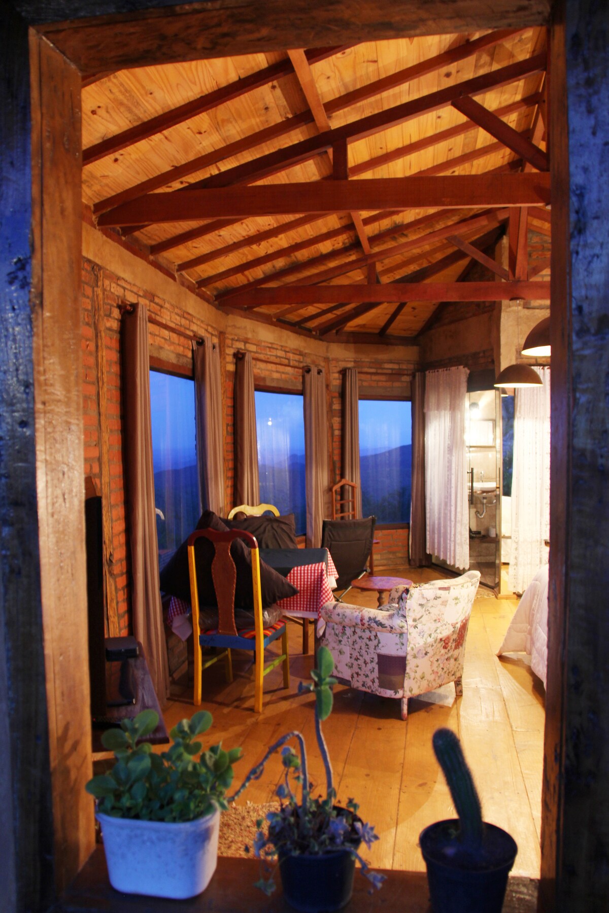 🏠BETWEEN THE TREVO DA CHAPADA AND THE VILLAGE OF LAVRAS NOVAS, there are TWO individual chalets. You will enjoy a very Minas Gerais experience, in this little place all decorated with local handicrafts, a backyard with a wood stove, a floor fireplace, sun loungers, hammocks and a suspended hammock, right in front of one of the most beautiful views in the world, Serra do Trovão, adorned by a valley that mixes the Atlantic Forest and Cerrado. We await you in this simple and charming corner of Geraes!🌻