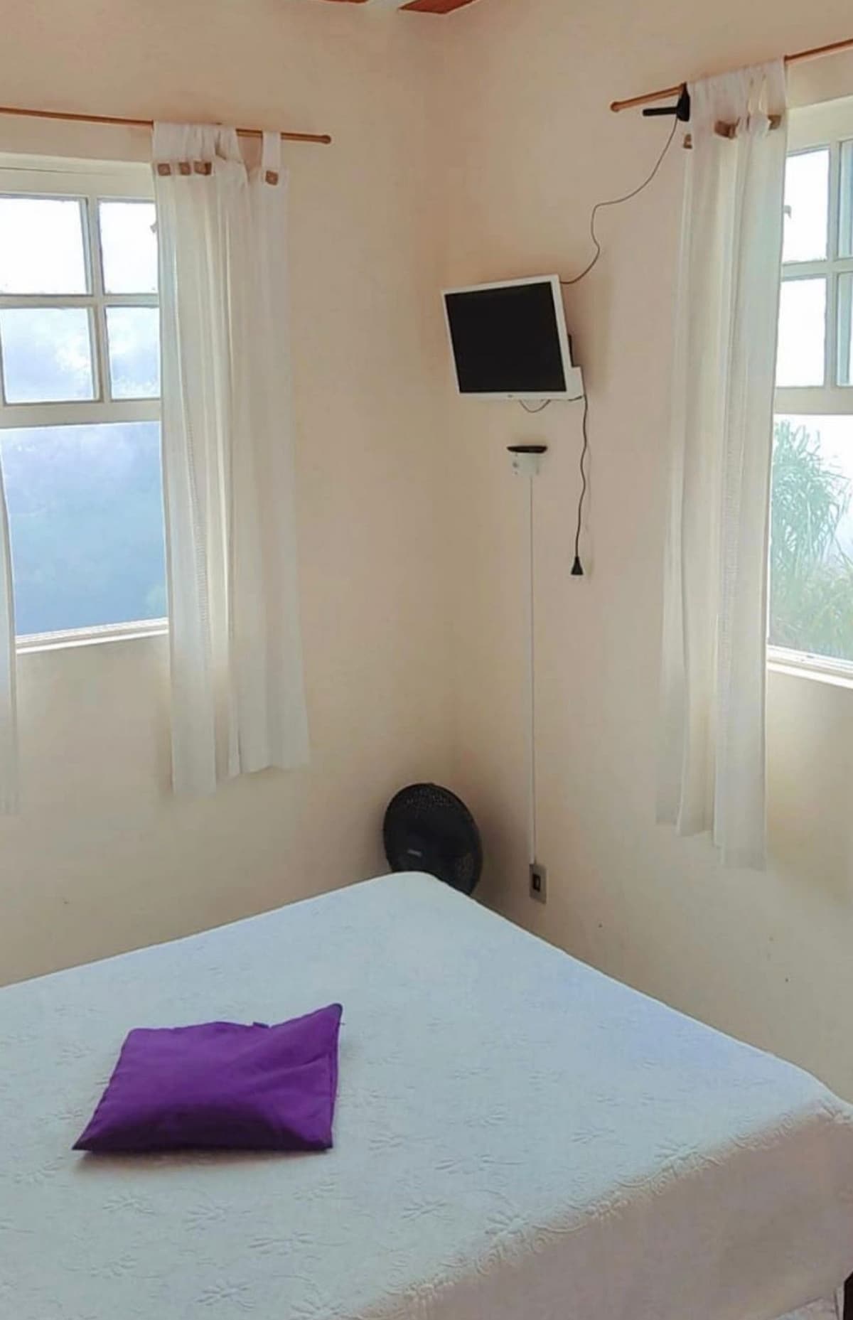 BANGALÔ FOGO (Wi-Fi): is located in VILLA AO MIRANTE, in the village of Lavras Novas, district of Ouro Preto. The suite has 3 internal rooms (Bedroom, Bathroom and Panoramic Lounge). Accommodating a Queen-size bed, it features: Smart TV, minibar, coffee table, hammock and (single bed, reversible). Coffee is served in the Panoramic Gourmet Space, with a barbecue and mini nightclub (events to be arranged). Our land is wide and overlooks the valley. North: Itacolomi mountain range. East Serra do Caparaó