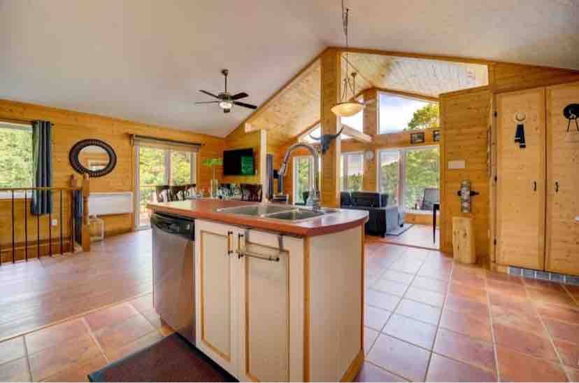 Welcome to our new hand crafted wood cabin located on the stunning island of Rapides Des Joachims. This cabin is the perfect escape for those looking for a peaceful retreat surrounded by beautiful mountain scenery. The cabin features a rainforest shower, loft with a queen bed and a twin, and a double pull-out on the main floor. Stay cozy with a beautiful fireplace and enjoy cooking in the full kitchen. Easy access by main roads year round. Direct access to the Zec Park and all of its trails.