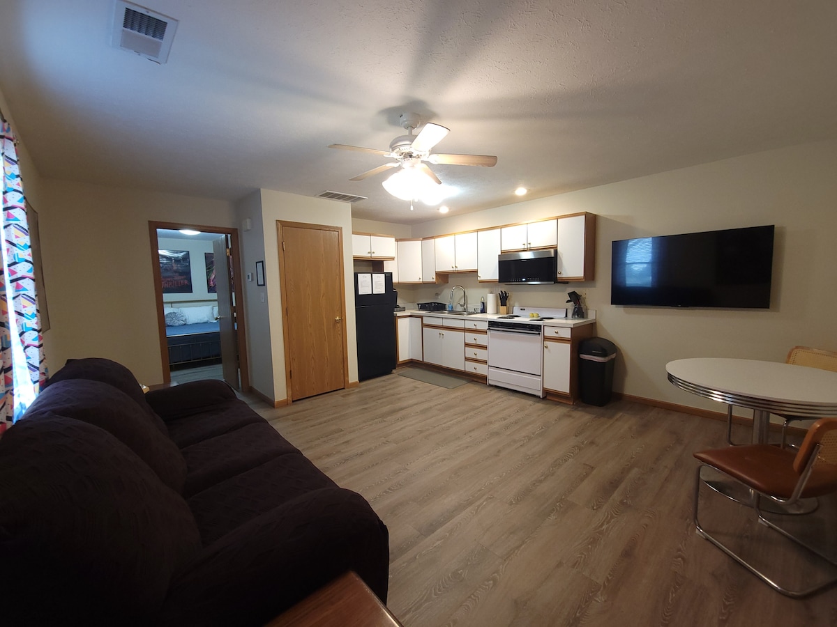 Drive right up to your front door! There is only one other apartment sharing this location. Amenities include wifi, smart televisions in living room and bedroom, couch that folds out into a full size bed (pillows and blankets are in the ottoman in front of couch), eat in kitchen, and free parking. Even though this is a small town, there is a convenience store 1/2 block away, a Walmart that is 3 and 1/2 miles away, and two other local restaurants that deliver to your door.
