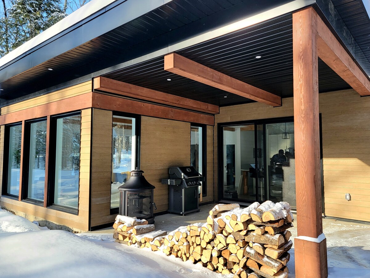 Welcome to Chalet Tri Boisé, a warm, fully wood-finished chalet, perfect for a nature getaway with a private hot tub and outdoor fire pit. Accommodates up to 10 guests: • Open-concept living area with gas fireplace • Fully equipped kitchen with induction cooktop and Keurig coffee machine • Private movie room • Mezzanine with hammock-style net • Dedicated workspace • Family-friendly amenities Modern comfort and nature combined for a memorable stay in Estrie. CITQ: 308466