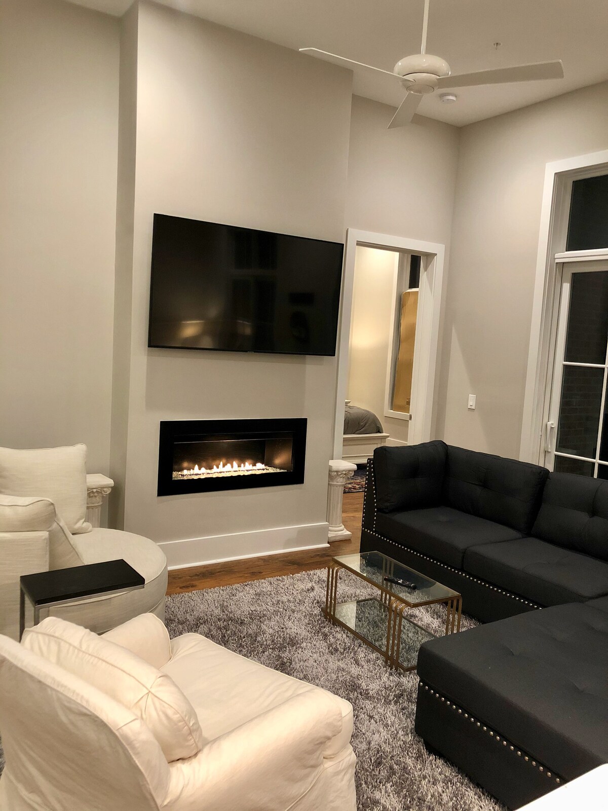 Spacious, modern condo with unbeatable location just off the Oxford Square. 11' 6" ceilings with huge windows. Indoor, secure entrance. Comfy furniture, smart TVs. Wifi. Gas fireplace. Rooftop deck with view of Square. Wet bar, wine cooler, ice maker. Secure indoor entrance, one garage parking space. Nice kitchen, spacious bathrooms, washer and dryer. Ice chest, chairs and other items for a picnic or the Grove.