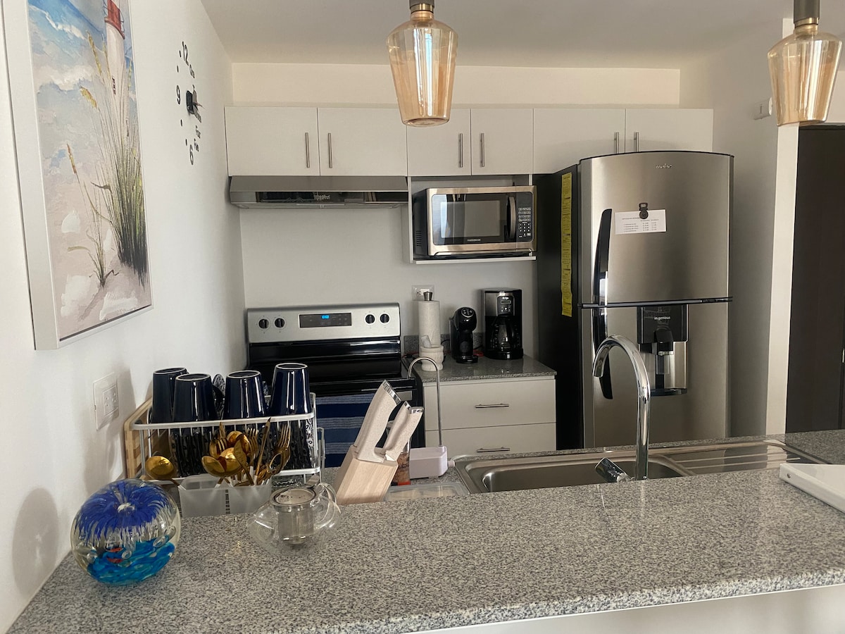 Disfruta de este apartamento tranquilo y céntrico: -Jacuzzi Privado en terraza del Apartamento para uso exclusivo de huéspedes . -Churrasquera Privada para uso exclusivo de huéspedes . -Baño completo. -Cocina Electrica , Frigobar , Microondas (Utencilios Basicos para cocinar ). - 2 Televisores S-Mart 🖥️ -Wifi - 1 Parqueo sin costo .🚗 2 minutos de Restaurantes . 5 minutos del centro de la Ciudad. 5 minutos de supermercados. 30 minutos del aeropuerto . 20 minutos de centros comerciales .