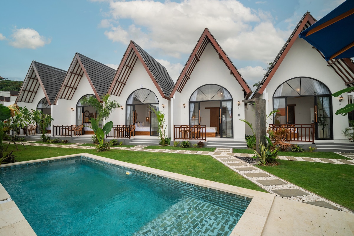 Discover serenity at our retreat in Uluwatu, Bali. Immerse yourself in the natural beauty of our peaceful oasis. Our property offers 6 comfortable units, a shared pool, kitchen, and a stunning living room. Need to unwind or stay productive? We've got you covered with our yoga space and reliable 5G WiFi. Choose our place for a memorable vacation or a productive workcation.