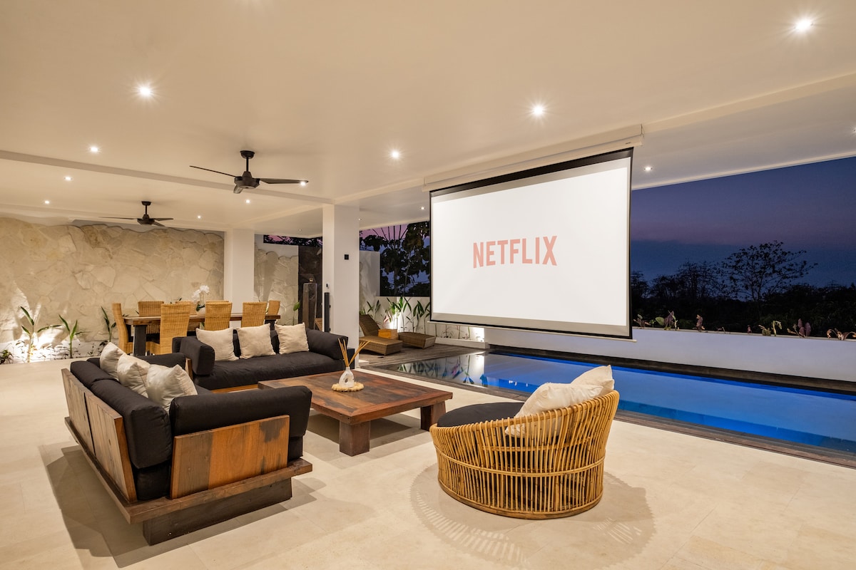 Welcome to Villa Teku, a spacious tropical luxury villa just a short ride from Thomas & Padang Padang Beach. With modern Balinese design and luxury touches, it offers ultimate comfort for families, friends, or groups. Enjoy a private pool, outdoor cinema, outdoor bar with swings, and stunning indoor/outdoor bathrooms. Sleeps up to 12 guests in 3 bedrooms, one bedroom has 4 queen-sized bunk beds. The villa includes a fully equipped kitchen, and personalised service with daily cleaning.