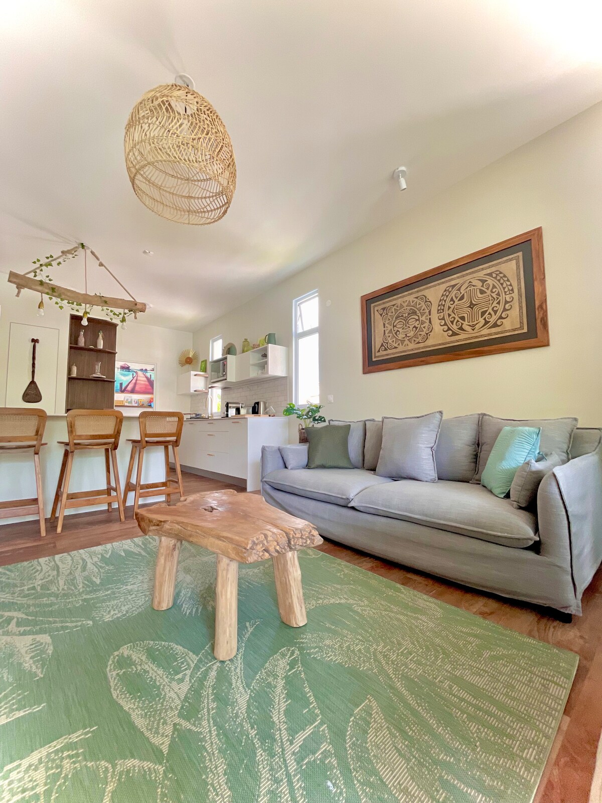 “Temiti, Condo at the water’s edge” has a story to tell you… The owners of this magnificent 2 bedroom apartment on the lagoon are eager to share the history and culture of their country with you. Come stay with the whole family in this chic, spacious and new accommodation with direct access to the beach located less than 20 minutes from the airport and benefiting from an extraordinary living environment close to all amenities. Maeva i Tahiti !