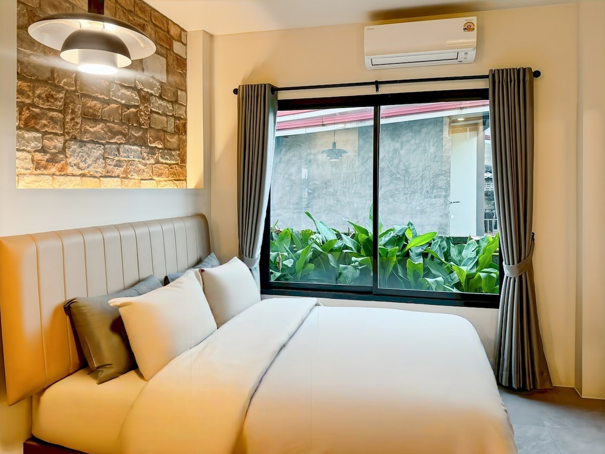 450 M to Walking Street and River! The location of this was excellent. 5 minutes walk into town, but remote enough for peace. Amazon coffee & 7-11 opposite. No kettle in the room, but hot water in reception & coffee in the morning.The most comfortable bed ever!! Beautiful views of nature.