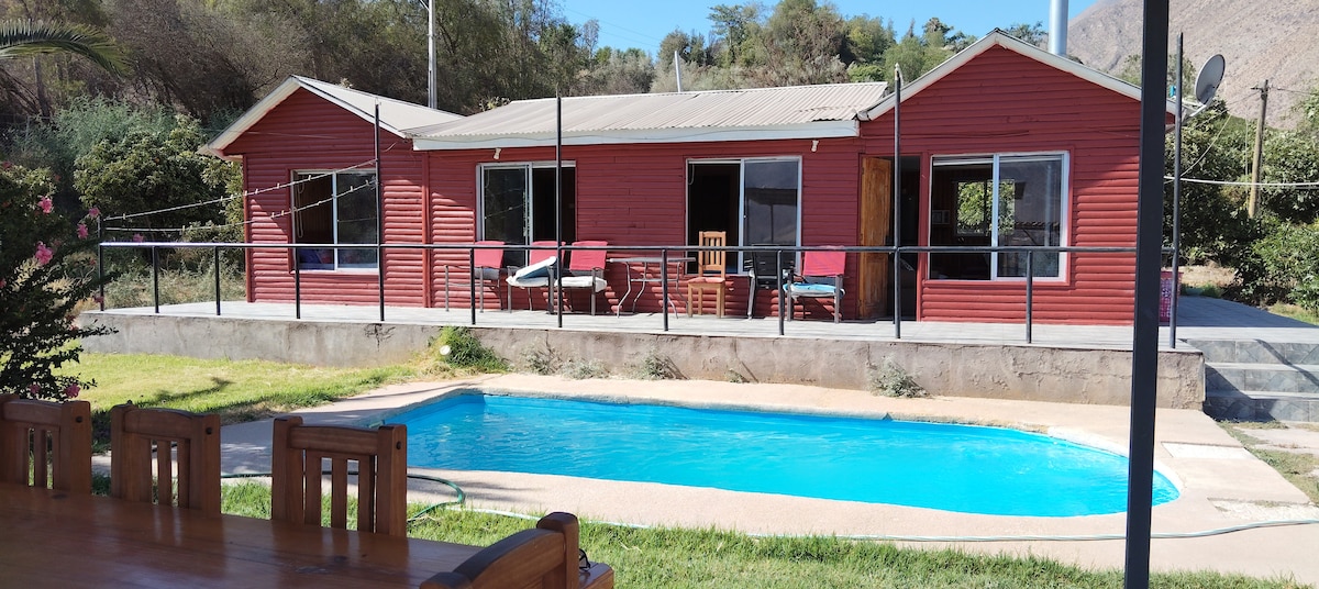 Rustic house, has a swimming pool for exclusive use and is located in a rural area 1.5 km from Vicuña (5 to 7 minutes by car). It has 2 bedrooms, one of which has a slanted window to look at the night sky. It also has a wooden hot tub, special to enjoy a bath in hot water and contemplate the starry nights of the Elqui Valley (the use of the hot tub has an additional value of $40,000 and must be booked the day before). There's a cell phone signal.