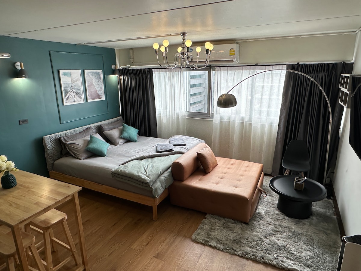 Perfectly located just 1 minute from the shopping mall and only a 3-minute walk to the Skytrain, this newly renovated stylish apartment is ideal for both short and long stays. The space offers fast WiFi, a fully equipped kitchen, private balcony, unlimited drinking water from a water purifier, and weekly cleaning service. Comfortably accommodating up to 3 guests, it’s designed for convenience, comfort, and a smooth, worry-free stay. For extended stay, we’re happy to offer a 30% discount.