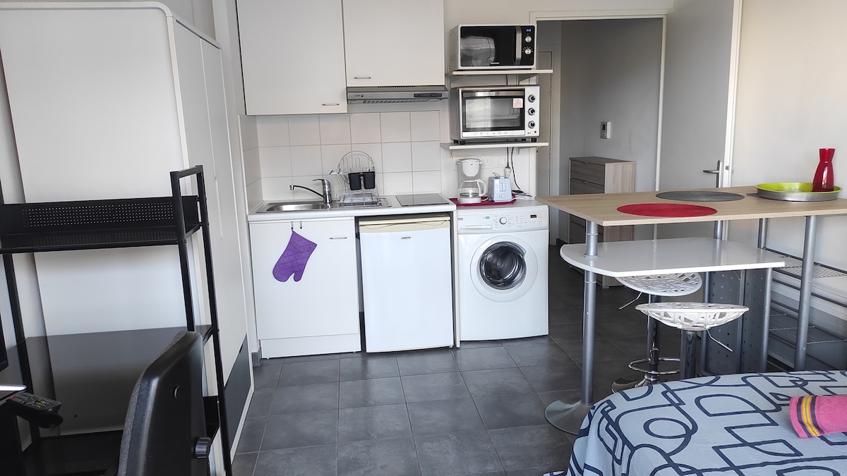 Studio neuf avec terrasse, calme, climatisation