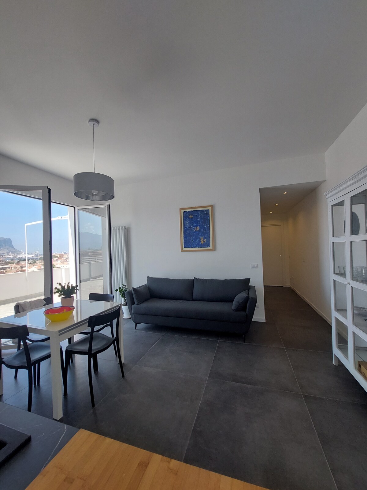 Enjoy a stylish holiday in this space located in the historic centre. The apartment enjoys a spectacular view over the rooftops, the mountains and the sea of Palermo, thanks to a large and very pleasant terrace. It is a brand new and well-renovated apartment close to the most interesting historical-artistic places in the city, which can be visited on foot, and well connected to any destination, thanks to the proximity of the central station and the main means of transport.