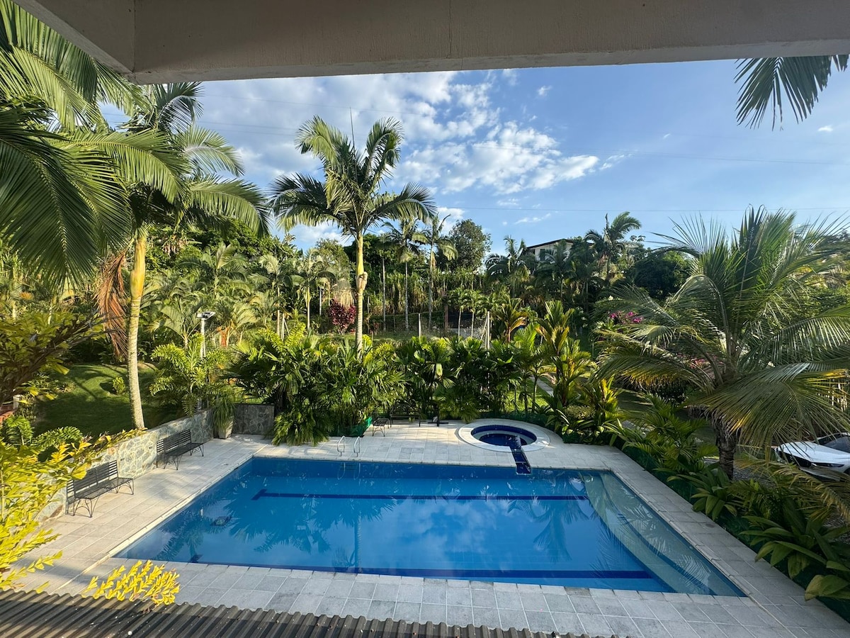 Modern, spacious and comfortable private vacation home with a swimming pool to enjoy the warm weather, balcony overlooking the coffee landscape to observe dazzling sunsets and a jacuzzi to spend a splendid evening sharing with family, full kitchen with gas and industrial stove, appliances, bar, dining rooms and spacious living room. Located between Chinchiná and Santágueda with easy access for all vehicles, indoor garage for two vehicles and open parking for 2 more vehicles.