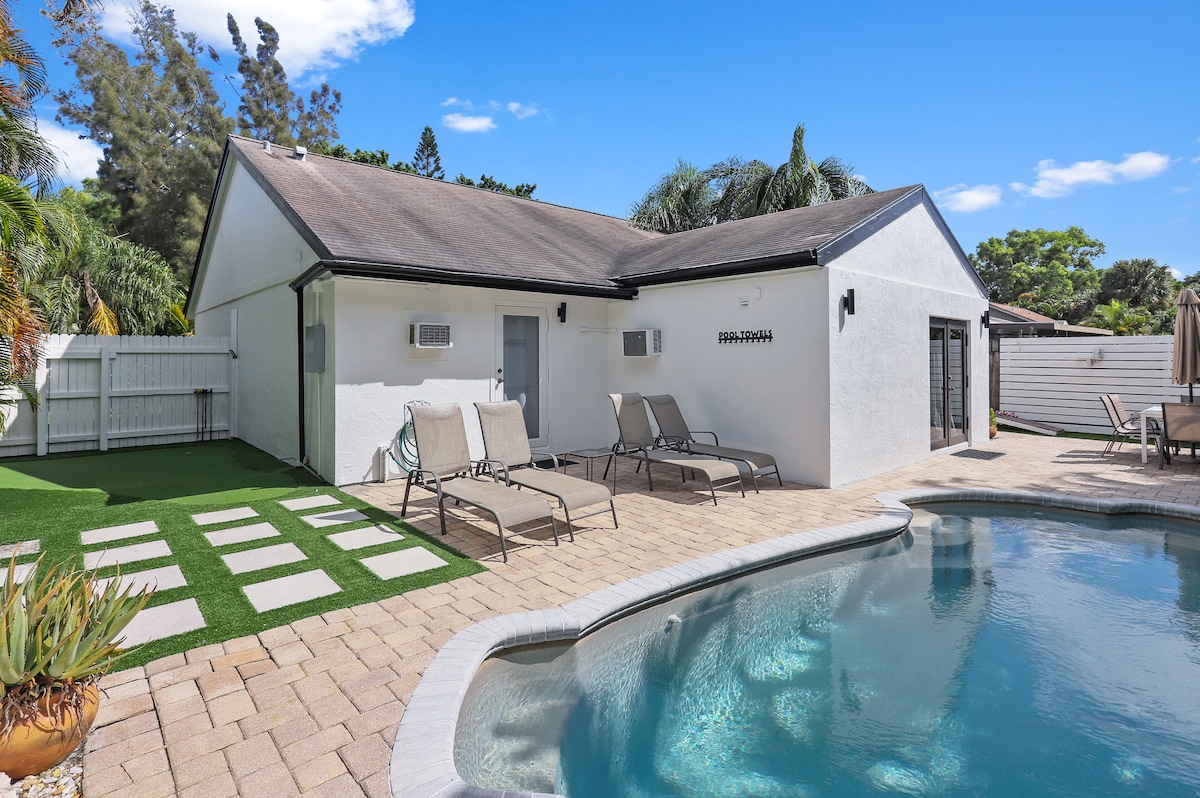 Family friendly, spacious vacation home with your own private saltwater poolside retreat in the heart of Jupiter Florida. This 4BR home will accommodate your entire group in modern luxury. While luxury inside the tropical patio, saltwater pool, and putt putt course await in your backyard. Outdoor grill, brick pizza oven, and game room with pool table. Only a few minute drive to local shopping or the beach. 25 minutes to PBI airport
