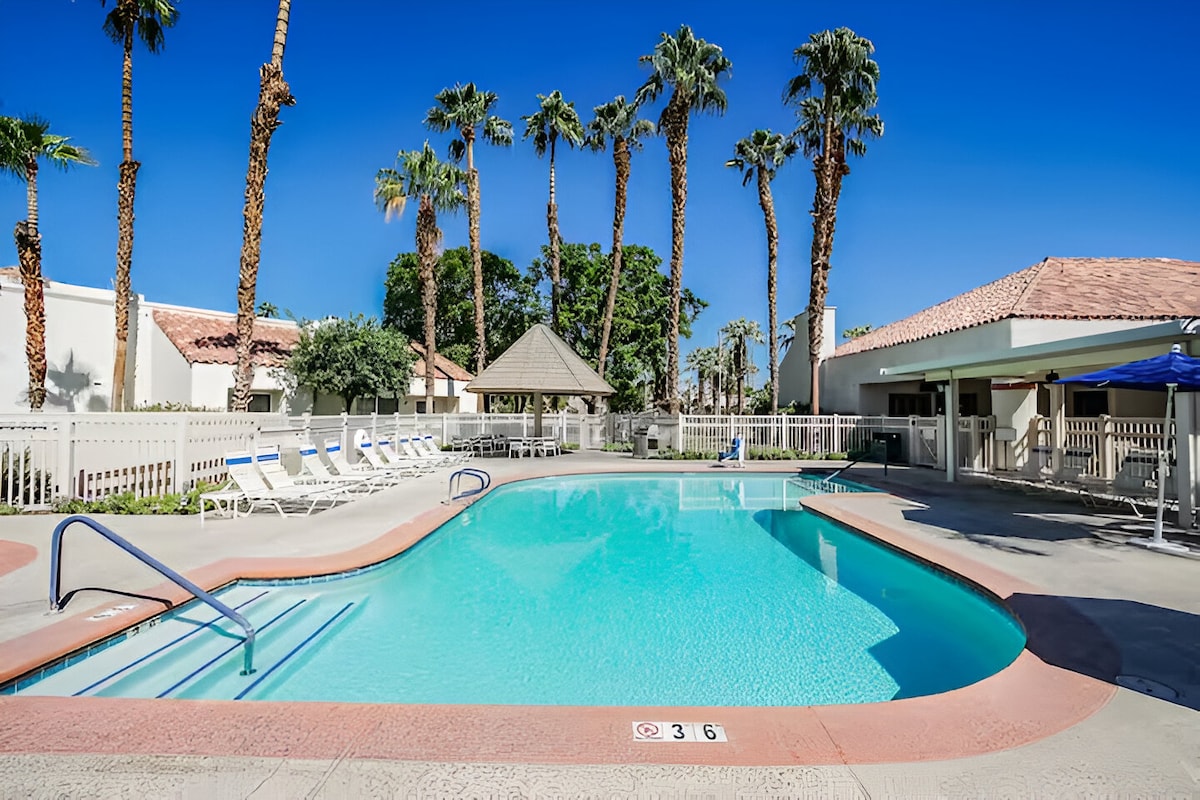 Welcome to the Palm Desert Lifestyle. - Stylish interiors with 1204 sqft of space, separated living areas, and outdoor patio. - Experience the comfort of a vacation home that feels like home. - Access to seven pools, championship golf, a fully equipped fitness center, and dining options on-site. - Breathtaking mountain views and proximity to attractions like Joshua Tree National Park and El Paseo shopping district. - Enjoy complimentary WiFi with no resort fees!