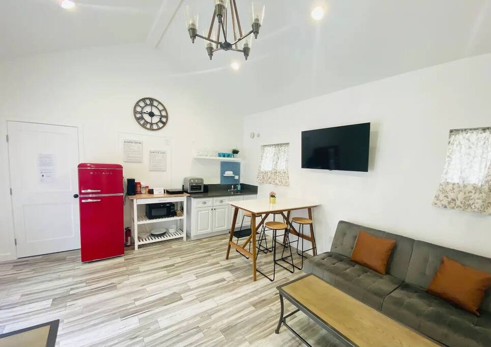 Discover your ideal getaway! Enjoy a private bedroom, walking closet, private bathroom, well-equipped kitchenette, washer/dryer, living space and exclusive entry. The functional kitchenette is equipped with a refrigerator, sink, microwave, and cooktop, while the spacious living area radiates quality with high-end furnishings and natural light. A washer/dryer inside saves time and money. Your private entry assures security and peace, and the vibrant new community. Experience comfort and style.