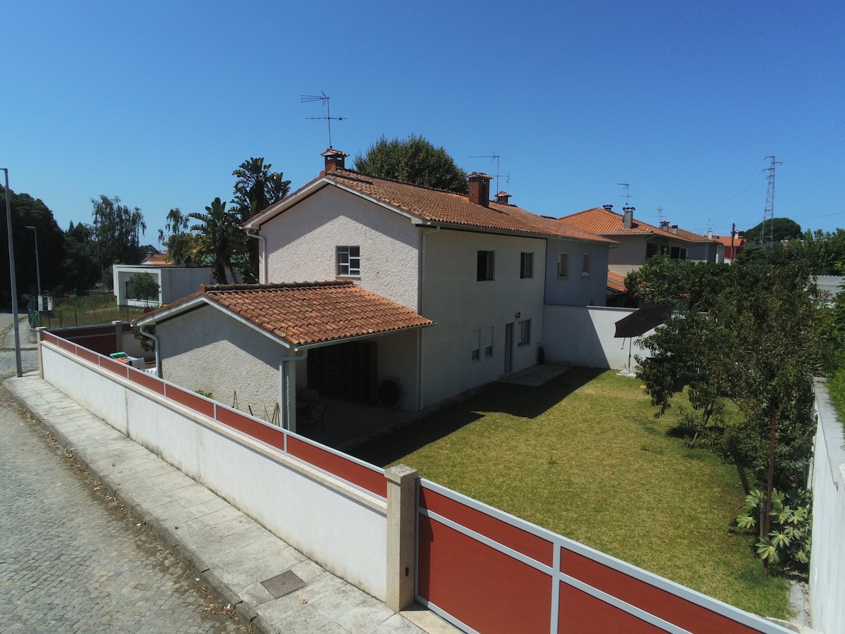 Beautiful private villa with amazing view and just 150 to the beach. Private swimming pool and huge wonderful garden north of Porto. The villa is newly renovated. Located in the middle of the beautiful nature of North Portugal. Very family friendly with 4 great bedrooms and several beautiful bathrooms. Huge garden and lots of activities like bikes etc. 8 beds + 1 kids bed. 274 m2 house, 7000 m2 garden