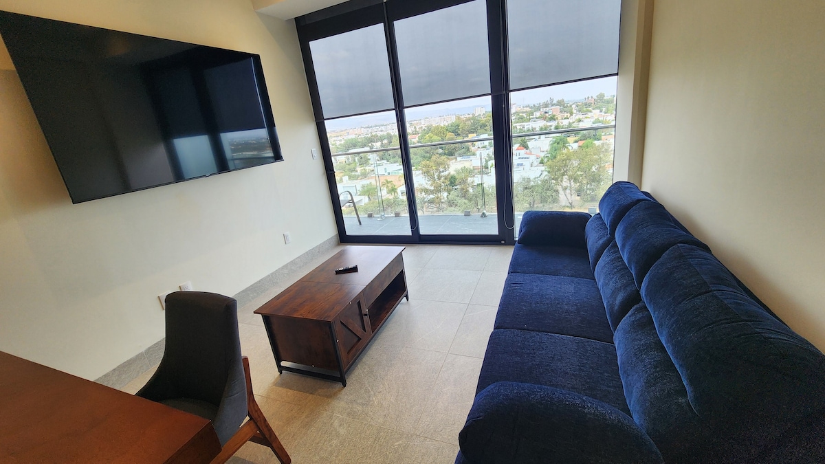 Omega Black, New Apartment 7 min from Colosio Av. Amazing view from 8th floor, TV 75", 65" and 58", private terrace, Optional AC for main bedroom $300 per night. 24 Hr security guard, private parking, and 2 elevators. Currently Building ammenities are restricted for Airbnb. Commercial center with Starbucks and Gold Gym at one side of the tower. One car allowed.