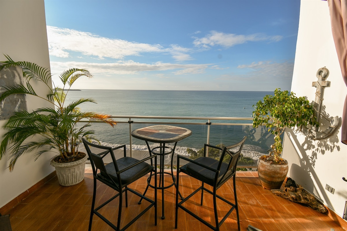 This unique place has a style all its own, steps away from the ocean and fully furnished ground floor unit 2 bed/2 bath apt has an open concept living, dining & kitchen space and an outside pergola area. (4 guests). This is a unique villa apartment over looking the picturesque Playa Caracol coast with ocean front and majestic mountain views and great on-site amenities. 1km of beach to offer you the best beach and surfing experience around.