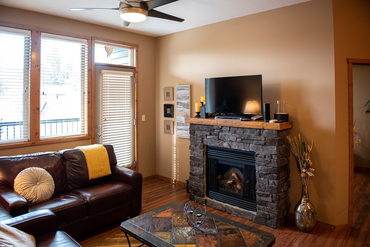 Come and recharge at Fairmont Oasis. This Scandinavian-inspired condo sits on the lovely Riverside Golf Course, surrounded by mountains and mature trees. It’s the ideal spot for you to escape routine, slow down, and get lost in the mountain way of life. Whether you’re an outdoor enthusiast or just want to pretend, this is the perfect base camp to explore, with access to boundless wilderness and cozy privacy. This unit is pet-friendly for those wanting to bring their fur baby along with them.