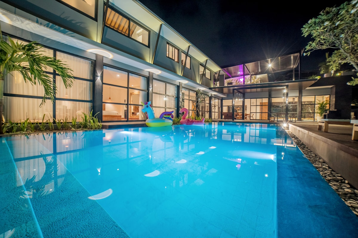 Villa Minggu seamlessly combines futuristic design elements with modern amenities, resulting in an immersive and innovative space. The villa showcases advanced features such as engineered lighting, media amenities, cinema projectors, and remote-controlled electronics, enhancing your sensory experience. Revel in the 360° spinning round bed and a sprawling loft bedroom. Unwind in the sauna or work out in the gym, embodying futuristic aspirations. Just 1.2 kilometers from the nearest beach.