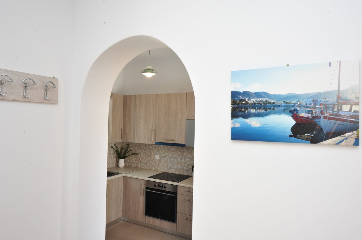 The apartment is situated at the top of the famous Tholaria village. Its location is ideal for a relaxing stay in a traditional village of Amorgos, combining a variety of local taverns/cafe in walking distance through cobblestone streets.