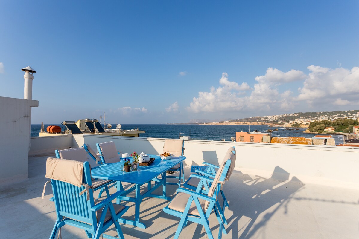 This 1 bedroom penthouse apartment with a huge terrace is located on the 5th floor, overlooking Koum Kapi Bay. It is only 50m away from the beach with many cafes and restaurants, and les than 10 walking minutes away from the Old Venetian Harbour and city center. It comes with a bedroom with a queen size bed with anatomic mattress, a fully equipped kitchen and a bathroom. The terrace has a big table, chairs and a hamock. Overall - an ideal combination for a memorable get-away.