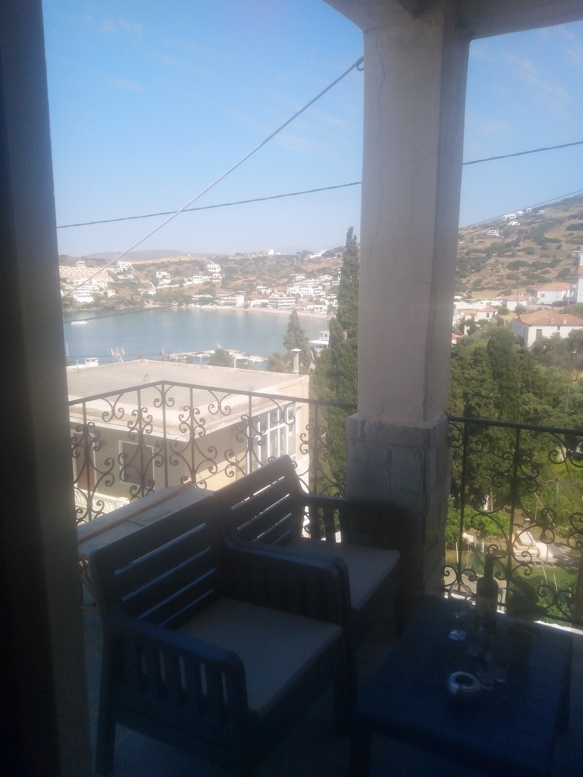 Renovated in 2024, new beds, mattresses, bathroom with shower, flooring, windows, etc. , in walking distance from 2 of the most captivating beaches of Andros island and the lively centre of Batsi town.Can be rent with adjacent apartment (seen on my profile) for big companies for up to 9people! The apt. lies in a big plot with private garden, offers all the facilities necessary to feel like home, and a big private terrace with breathtaking view to Batsi Bay and the Aegean sea.