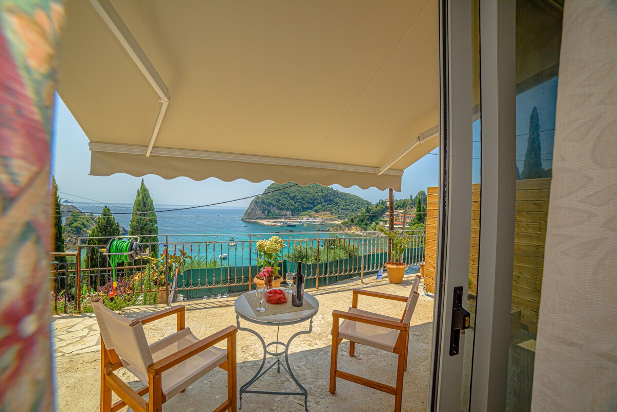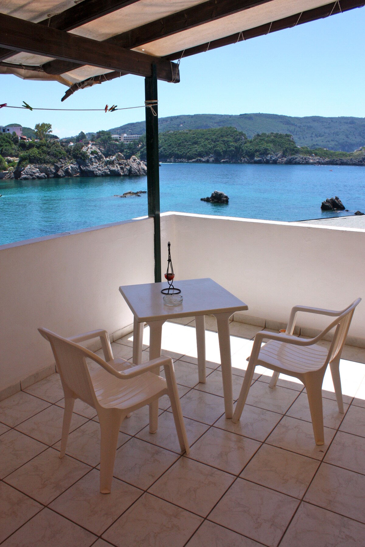 Our accomodation is situated in the center of Paleokastritsa, fifty meters away from a beach. The house has two apartments with big balconies and amazing sea view from Paleokastritsa. Apartment 1 : one bedroom, sitting room with 2 beds and 1 sofa, fully equipped kitchen, bathroom and a big sea view terasse . Apartment 2: one bedroom, sitting room with 2 beds, fully equipped kitchen, bathroom, washing machine and a big full sea view balcony.