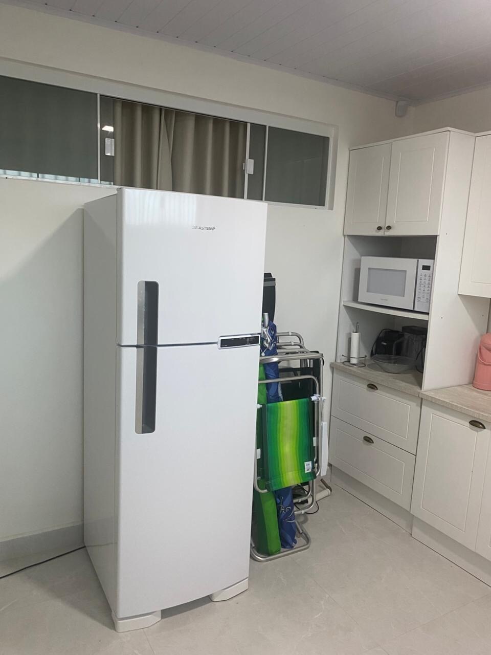 Furnished studio with air-conditioning, electric stove, refrigerator with freezer, microwave, coffee maker, kitchen items, bed linens with the possibility of using a bed and extra for children, as it is a crib that is next to the individual garage box number 508, basic cleaning materials, clean bath and face towels. Liquid soap hangers access to the building and studio through a password. Washing Machine (payment required for use)