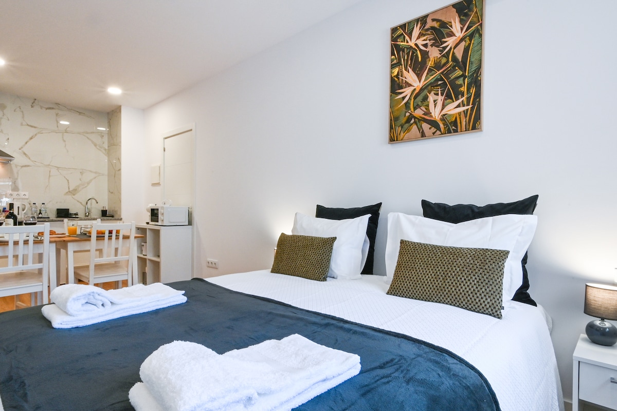 Porto Prime Suites oferece conforto e conveniência, a apenas 5 minutos a pé do Metro do São João. Localizadas no rés-do-chão de um prédio, as suítes são modernas, com decoração clean e todas as comodidades: camas grandes, ar condicionado, casa de banho privativa e kitchenette equipada. O check-in é automático, garantindo flexibilidade, e há estacionamento gratuito na rua. Ideal para relaxar e explorar a região com total conforto.