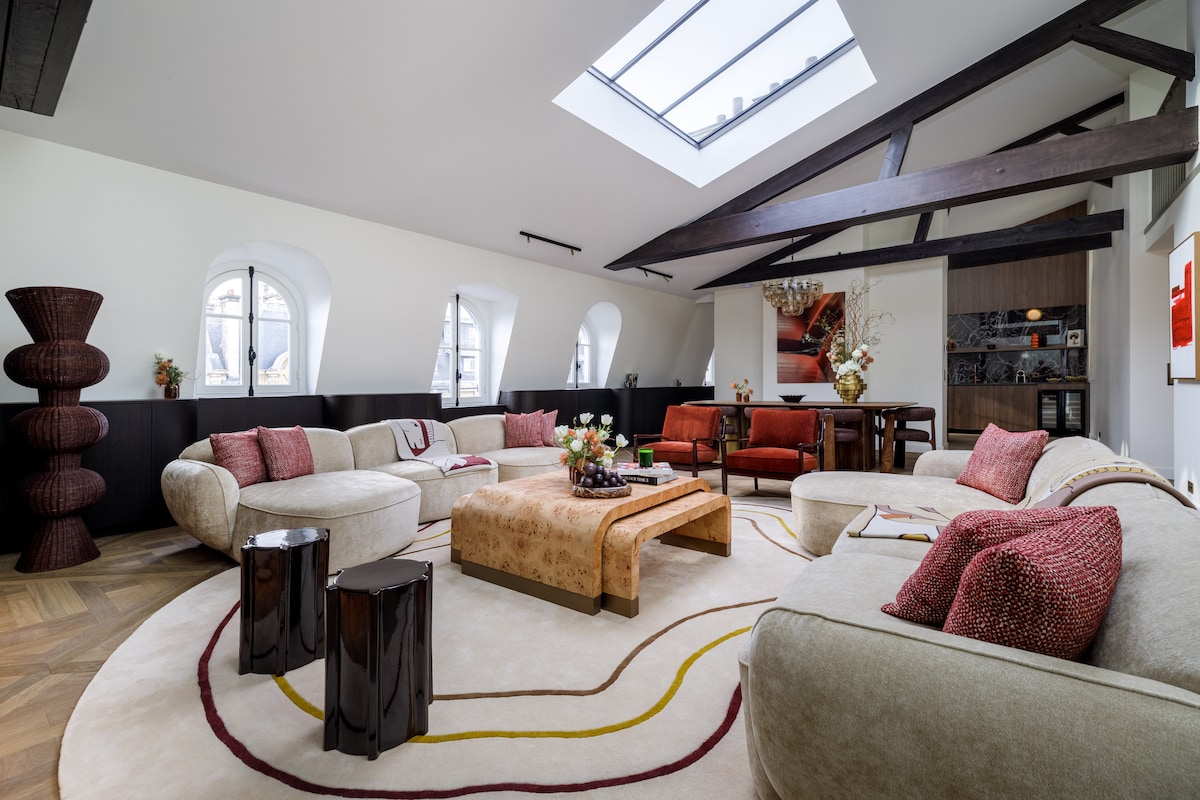 Welcome to My Skydome, a unique place in the heart of the upper Marais. This 200 m2 flat is the result of an ambitious project by an Italian architect and a Parisian decorator to create an exceptional living space. The glass roof covering an 1896 Parisian courtyard is enhanced by the use of original materials such as wood and stone. After a day of sightseeing in the department stores and museums of Paris, the 200m2 My Sky Dome is the perfect place to relax and recharge.