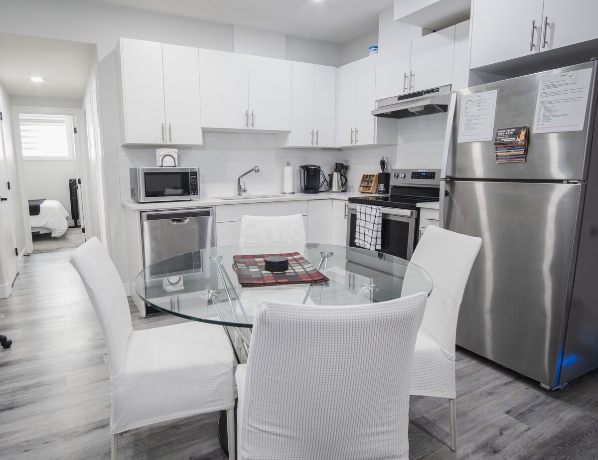 Our newly-renovated and romantic NYC loft-inspired basement suite offers over 1000 square feet of luxurious living space. With its high ceilings, floor-to-ceiling glass walls and French doors, and cozy in-floor heating, you'll feel like you're in a real loft. The high-end kitchen and bathroom add a touch of sophistication, and the 90s Simpsons arcade game provides hours of entertainment. Book your stay with us and experience the luxury and comfort of our suite.