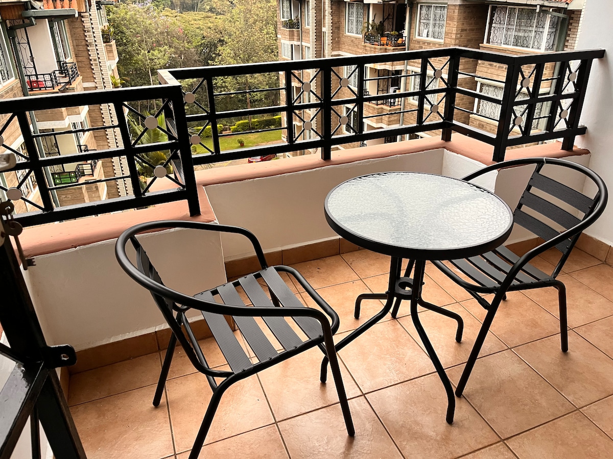 Kick back and relax in this calm, stylish space. Its close to everything, making it easy to plan your visit with en-suite bathroom, eloquent dining room, bedroom & lounge Netflix-TV, balcony, kitchen and washing machine area. All amenities provided, including unlimited Fast WiFi and business facilities. Situated in a quiet leafy suburb, but also conveniently close to Westgate, Sarit and Lavington shopping malls, restaurants, business hubs, CBD and few meters walk away from Westlands nightlife.