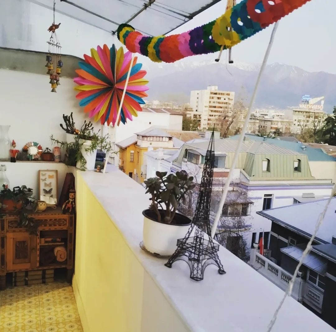 Apartment with a unique atmosphere and decor. Excellent connections (walking, in five minutes you reach the Baquedano metro station). Located in a traditional neighborhood in the heart of the city, it faces a quiet and peaceful street, with a beautiful balcony overlooking the Andes Mountains. It is close to parks (Bustamante, San Borja and Forestal), cafes, restaurants, bars, cinemas, theaters, museums, libraries and tourist attractions such as Cerro San Cristóbal and Cerro Santa Lucía.