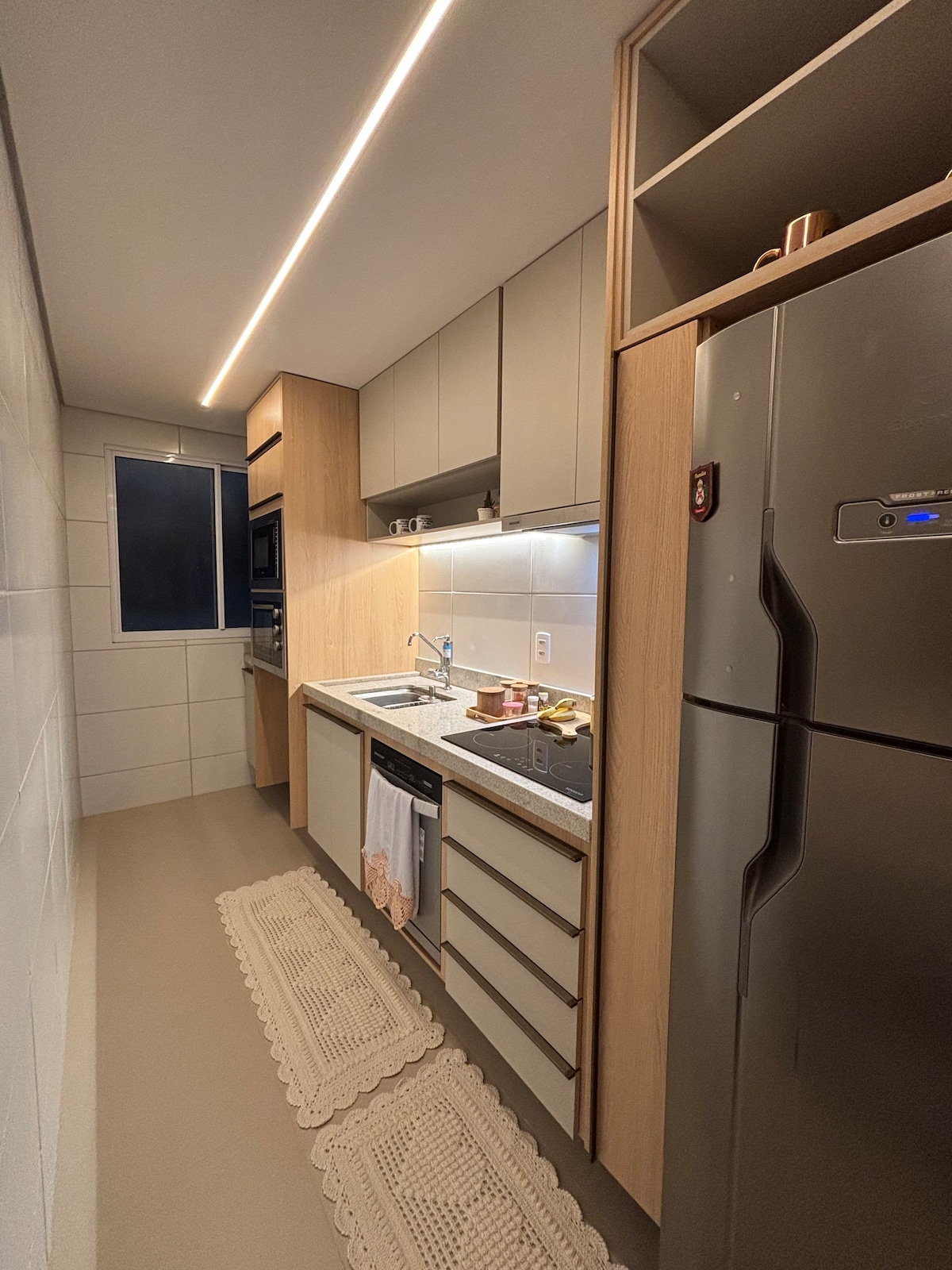 Desfrute do conforto e elegância neste apartamento moderno, a poucos metros da praia! Com decoração charmosa, espaço aconchegante e cozinha completa, é o refúgio perfeito para relaxar. Aproveite a iluminação natural, a área de jantar sofisticada e um ambiente bem equipado para sua estadia. Ideal para casais, famílias ou trabalho remoto. Venha curtir dias inesquecíveis com todo o conforto!