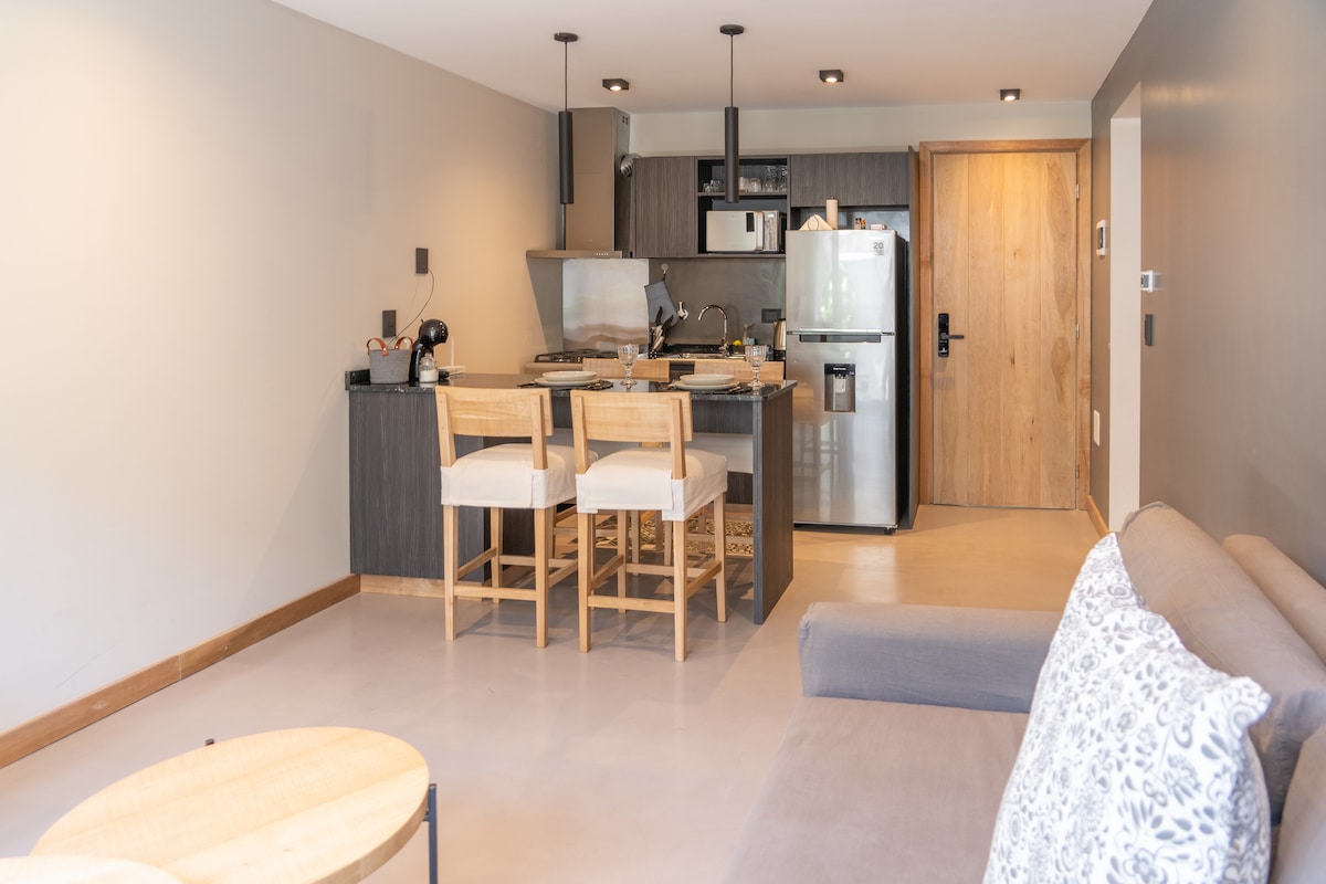 More than a place to sleep, this apartment feels like a small refuge of its own in the middle of the city. It's in the heart of everything, but facing the interior, it offers a calm that's hard to find in the center. After a day of walking, activities or work, what you enjoy the most is coming back and feeling that intimate tranquility, as if it were your home away from home. It's a simple, comfortable and cozy space, designed so that you can really rest and recharge.