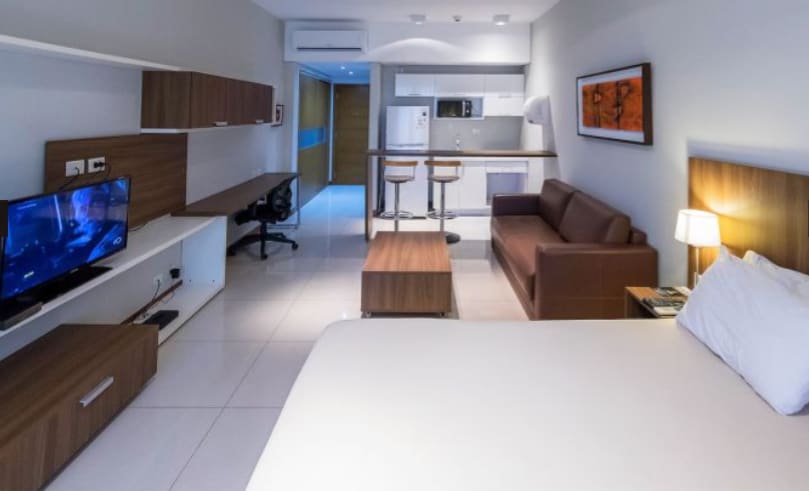 This modern 1-bedroom apartment in the heart of Asunción, located just 50 meters from Shopping del Sol, in the heart of the corporate hub, is the perfect place for those seeking comfort, style and an unbeatable location. Accommodating up to 4 guests, this space is designed to offer you a unique experience, whether for business or pleasure. It is designed so that you can enjoy the city with everything you need at your fingertips.