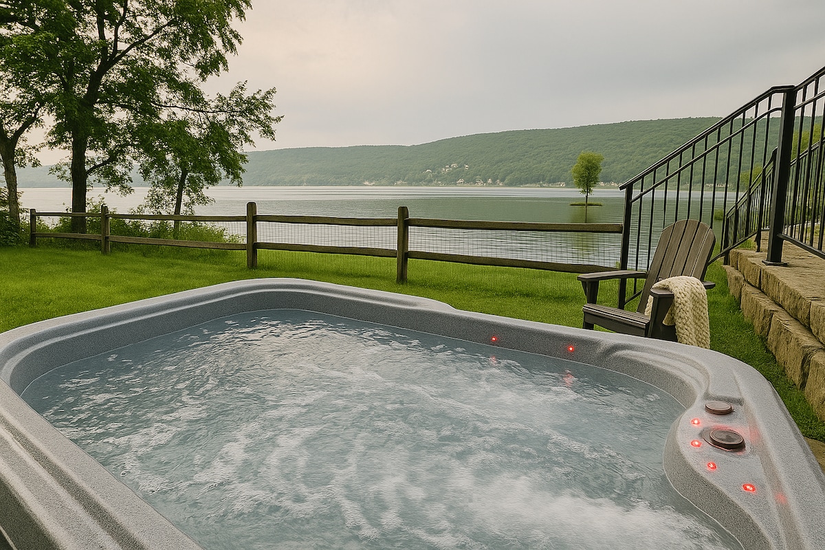 Relax with the whole family at this peaceful home. Lakefront where you'll never get bored: Converse in the hot tub, cook a meal in our chefs kitchen, BBQ with friends, rent a motor boat, teach the kids to ski, head to the local wineries or cider farm, roast marshmallows around the firepit, watch the leaves change, fish off the dock, play outdoor games, discover our personal hidden "speakeasy". So much to do just do it with people you love